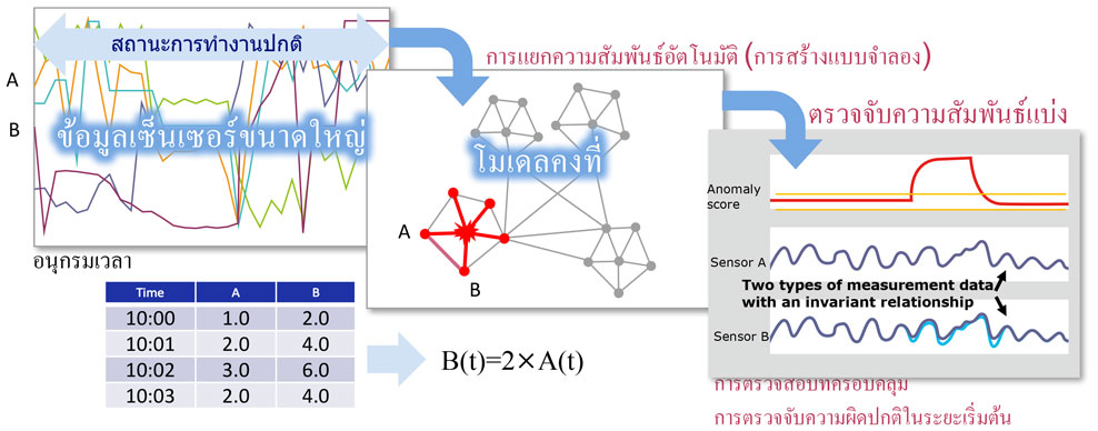 ดึงความสัมพันธ์ที่ไม่เปลี่ยนแปลงจากข้อมูลอนุกรมเวลาซึ่งประกอบด้วยเซ็นเซอร์หลายตัว และสร้างแบบจำลองการตรวจสอบ